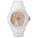 オレンジアクアイエローペイズリーモダンパターンウォッチホワイトバンドスポーティ腕時計