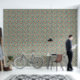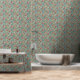 オレンジアクアティール(緑がかった色)ブルーアールヌーボー壁紙