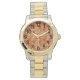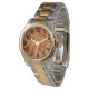 この女性の時計は、オレンジ色の色合いの五角形と台形からチューリップのアート違うデコデザインを持つ。