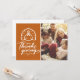 この写真カードを持つ家族や友人に感謝祭を送る。オレンジモダン色の背景に書とシンプル七面鳥のイラストレーションを備えている。詳細を追加してパーソナライズこのカスタムThakskviignカードは他の色とカードストックで利用可能。