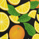 オレンジのスライスと離れ。シームレスなパターン。カスタム背景色。