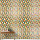 オレンジファンキー、ブラウン、金ゴールド、ホワイト、ティール(緑がかった色)ブルーの円を特徴とするレトロなスタイルミッドセンチュリー壁紙。これはあなたの壁のアイキャッチャーに間違いない!