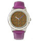 オレンジ色のキノコの葉のパターンの腕時計 腕時計