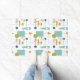ミッドセンチュリーモダンドアマットは、正方形、円、三角形、ターコイズ、オレンジ、緑、青、黒の色のラインを備え、フローチャートと同様にデザインされている。これであなたの家に明るく陽気な入り口を作る!