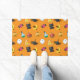 オレンジ色の背景を持つ可愛いハロウィンパターン ドアマット