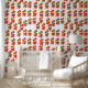 オレンジ色の花柄の壁紙 壁紙