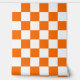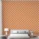 オレンジ色市松模様に白チェックウォールデコ 壁紙