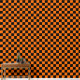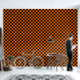 オレンジ色市松模様に黒チェックウォールデコ 壁紙