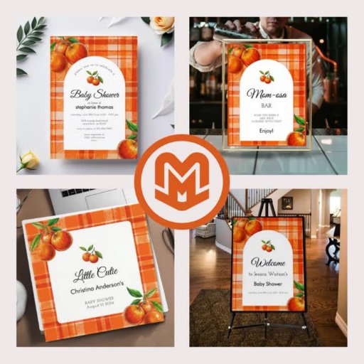 オレンジ3Dシトラスの格子柄のハンドドロー赤ちゃんシャワー 招待状