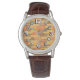 オレンジ、金ゴールド、茶色の長方形と円 腕時計