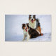 オーストラリアの羊飼いのオスとメスの犬が雪の舌の上に座った後に口から遊