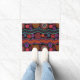 このモダンデザインは黒い背景に明るいオレンジ色彩の鮮やか、紫、緑、ターコイズと白のカラフルの部族ドットのパターンを特徴とす#tribal #australian #australia #outdoor #home #homedecor #decor #doormats #style #trendy