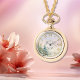 オーダーメイドのペンダントウォッチネックレス - 雪の降る冬の森のデザイン - 彼女への特別なホリデーギフト。