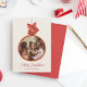 フェスティバル祝の赤と金ゴールドのボーブルの中で家族の写真をフレームするオーナメントデザインを備えた美しく細工された「メリー・クリスマス」カードでホリデーシーズンを迎え魅力的。スクリプトエレガントフォントとクラシックオーナメントモチーフは、休日の応援を広めるのに最適な時代を超えたtouchを追加。コーディネートされたコレクションの一部として、このデザインは一致するギフトラベル、封筒などで利用でき、休日の対応を探すシームレスでフェスティバルの検索を作成できる。クリスマスパーソナライズされたの挨拶に最適な、このカードは季節のお祝いに暖かさと優雅さを与える。