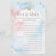 この赤ちゃんシャワーゲームカードは、金ゴールドモダンクラウンとピンクと青の水色の背景にスクリプトフォントを備え、完璧な驚き!王子か王女?このカードを使ってトレンディー性リビールパーティー!
