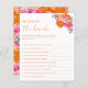 ピンクとオレンジのおもしろいアートワークとデザインを備えた花嫁ブライダルシャワーゲームの鮮やかすべての目でイベントにフローラを追加よくはしゃぐする。ブライダルシャワー、ウェディングシャワー、またはバチェロレットのパーティーに最適な、この明るいインスパイア庭のゲームは、花嫁が着ているものの記憶をテストする。夏またはフローラをテーマにしたお祝いのためのおもしろい、インタラクティブなアクティビティ。