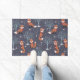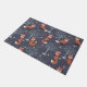 炭の背景に、雪の森の中で赤い帽子をかぶった愛らしいキツネとスカーフが羽毛を描いている。