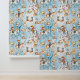 テディベア、ポニーのカウボーイ、カウボーイブーツ、男の赤ちゃんの子供部屋や小さな少年の部屋の壁紙のためのカウボーイハットの青と茶色の愛の水の色のイラストレーション。