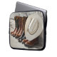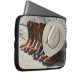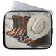 カウボーイブーツの列に並んだカウボーイハットが丸太の外にある ラップトップスリーブ