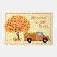 田舎に住む皆さんにとって、このドアマットはあなたのドアのステップでそのようなおもしろいになる!オレンジ色の古いピックアップトラックが葉あり、横にカボチャが付いた大きな明るい色の遠くに、赤、オレンジ、黄色、緑のカエデの木から運転している。「私たちの家へようこそ」と平易な文字で示されているが、好きなだけカスタマイズでも構わない。ドアマットは薄茶色にトリミングされる。