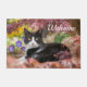 カエデの木の下で休む可愛い白黒猫 – ドアマット