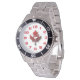 白い背景のアメリカハナノキの葉を特色にするはっきりしたで赤い数字のこのおもしろいそしてユニークな腕時計とのあなたのカナダのプライドを示して下さい。