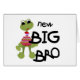 froggyのデザインのお兄さんのTシャツ、マグ、ボタン、カード、ステッカー、トートバック、および多くの"新しく大きいBro"を読むストライプのシャツおよび黒い文字のかわいい緑カエル!