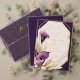 テーブル番号カードはエレガント、葉のある金属製のフレームに紫とアイボリーのタコのユリを備えている。編集可能フォントと文字の色。私たちのCalla Liliesコレクションで全体のCalla Lilyエレガント Suiteを参照。