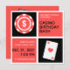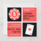 カジノミニマルチップとハートのエースを備えた赤と黒の正方形を搭載したデザインで、カジノをテーマにした誕生日パーティーの招待状。40歳の誕生日のバッシュや他の誕生日に最適!注:背面のプレースホルダ写真には、白黒フィルタが適用されている。カラーもし写真を使用する場合は、編集機能を使用してフィルタを削除する。