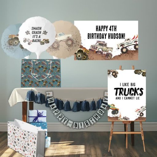 カスタマイズ可能なモンスタートラックボーイズ誕生日 横断幕