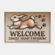 カスタマイズ可能な家族名でウサギをジャンプ ドアマット