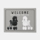 白黒プードルのイラストレーションを特色にするかわいい玄関マット。 カスタマイズ可能な背景の色および文字。 犬の恋人またはプードルの所有者のための完全なギフト。