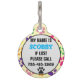 あなたの犬または猫のためのクールでカスタマイズ可能なペットラベル。失った示されている名前を削除し、あなたのペットネームおよびあなたの電話番号を加えて下さい。デザインはあなたが愛するファンシーな文字およびカッコいいの足のプリントのグラフィックが含まれています! またあなたの女の子犬か猫についてはピンクの文字との一致のデザインを見て下さい!