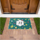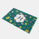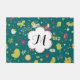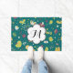 鳥お洒落類と蝶の美しい、カラフルと芸術的鳥のお洒落デザイン、蝶、花、ハート、x'sを特徴とする鳥と蝶。このかわいらしデザインは、ティール(緑がかった色)の背景にワイン、緑、金ゴールドの鳥や蝶を備えている。このおもしろい、カラフルお洒落、ドアマットは白い花形のバナーを備えており、モノグラムイニシャルで簡単にパーソナライズできる!