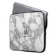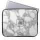 カスタムで白い大理石の石造りのモノグラムのラップトップスリーブ。 名前入りな一流の大文字とのエレガントなデザイン。 友人および家族のためのシックな誕生日プレゼントのアイディア。 Zazzleの他のプロダクトへの移動可能なプリント。 彼または彼女のためのLuzuryコンピュータ付属品。
