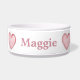 ボールのまわりのピンクのハートの漫画のスタイルのグラフィックが付いている甘いドッグフードの皿、完全に、ハートの真中のピンクの文字と。 あなたの犬の友人のための文字を個人化して下さい。 あなたの台所を明るくする非常にかわいらしい見る皿。 あらゆる犬のオーナーのための素晴らしいギフトのアイディアを作ります。