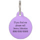 この可愛い紫色の犬の手に犬の名前と電話番号またはアドレスを追加し、小さな名前タグを印刷する。パーソナライズ領域の色を変更できる。
