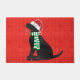 カスタムクリスマスブラックラブラドールホリデイレッド ドアマット
