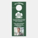 木々に囲まれた可愛い森の家のパーソナライズされた下に、本物のエージェントの写真とマーケティングのメッセージとカスタマイズ可能な緑の不動産仲介業者ドアハンガー。リスティング実在エージェントのマーケティング署名のためモダンにこのデザインに資産会社名とシンプルエージェントを追加する。