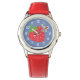 青と赤の子供の時計にスマイリーフェイスを付けパーソナライズされたて愛らしい漫画のイチゴの数字に簡単を読付けて。