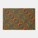 カスタムティール(緑がかった色)サイズ赤と黄色の部族の犬ボウルマット ドアマット