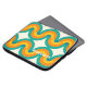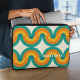 美しコンテンポラリーいダークイエロー、オレンジ、ティール(緑がかった色)ブルー、海グリーン色幾何学半円の波パターンアイボリークリームの白い背景。名前モノグラカスタマイズムまたは好きなイニシャルでパーソナライズする余地がある。エレガント、芸術的華美、スタイリッシュ折曲した抽象芸術はファンシーファッションdiva、お尻トレンドセッター、レトロなアート、デジタルのモチーフ愛好家のための。