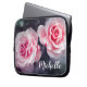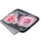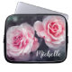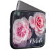ラップトップスリーブとピンクのバラのデザインの暗い背景。