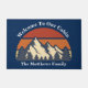自然素晴らしの岩の山や森の木々の上のこの日の入り口は素晴らし、夏のキャンプやRVパーク、または森のログキャビンのカスタム歓迎の形式のためのイメージを作る。ご自分の文字を追加しパーソナライズされたて、キャンパーやベッド&ブレックファーストのゲストを歓迎する。おカスタマイズ客様の挨拶またはビジネス名