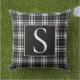 黒スタイリッシュと白の市松模様にバッファローのプライド/タータンチェックのデザインとパーソナライズされたモノグラム/イニシャル付き屋外ピロー。あなたの農家の装飾に最適。