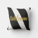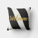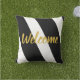 このストライプ黒枕は幅の広いが斜めに上下している。希望の単語でフェイク金ゴールド文字をカスタマイズします。 現在、読金ゴールドスクリフェイクプトの'Welcome'です。枕は白黒クラシックの配色。