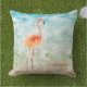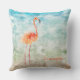 水彩ピンクフラミンゴ |トロピカルビーチピローは、サンゴとピンクのフラミンゴが海岸に立っている。本当のデザインのためにあなたの名前またはその他の文字を追加パーソナライズされた。
