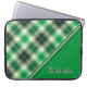 緑と黒の格子状のラップトップスリーブは緑の半分で行わ無地のれ、格子状のパターンはあなたの名前を追加する。