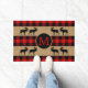 美しコンテンポラリーい黒と赤市松模様にの格子模様。素朴なスタイリッシュスタイルは、あなたの家族の名前モノグラムでカスタマイズまたはパーソナライズする部屋とフォーマット。オリジナルのデコー飾ルアクセントあなたのカントリーコテージハウス、ログキャビン、マウンテンロッジ、魚釣りキャンプ、湖や川のバケーションホームのフロントポーチやドアステップ。