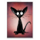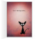 ピンクおもしろいと紫のカスタイリッシュードに大きな魂の入った目を持つ、小さくて黒いオリエンタルネコの可愛らしいスケッチ。自分のメッセーカスタムジをに追加します。美しい東洋猫の挨拶状か、猫好きの誕生日カード。ZazleのStrengeStoreのオリジナル猫イラストレーション、Paul Stickland氏。猫素晴らしの贈り物猫好き